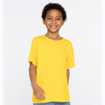Made for the kids who move, play, and live in colour. Soft RING SPUN cotton keeps them comfortable, while a smooth print surface makes every design pop. With matching adult colours, it’s a dream for teams and family programs. Discover the new favourite tee that’s made to last and easy to love. 7.4 oz/ly (CA), 4.4 oz/sq yd (US), 150 gsm (EU). 100% combed and RING SPUN cotton. Deluxe 30 singles. Compacted yarns to minimize shrinkage. Taped neck and shoulders for comfort and durability. Tear away label for private branding. 1x1 rib knit collar. Double needle cover stitch at sleeve and bottom hem. Superior printing surface. Tubular body. Modern fit. OEKO-TEX® STANDARD 100. *65/35 polyester/cotton (Dark Heather, Heliconia). **90/10 cotton/viscose (Sport Grey). ***98/2 cotton/viscose (Oatmeal Heather). *OEKO-TEX® Standard 100 certification applies to blank apparel.